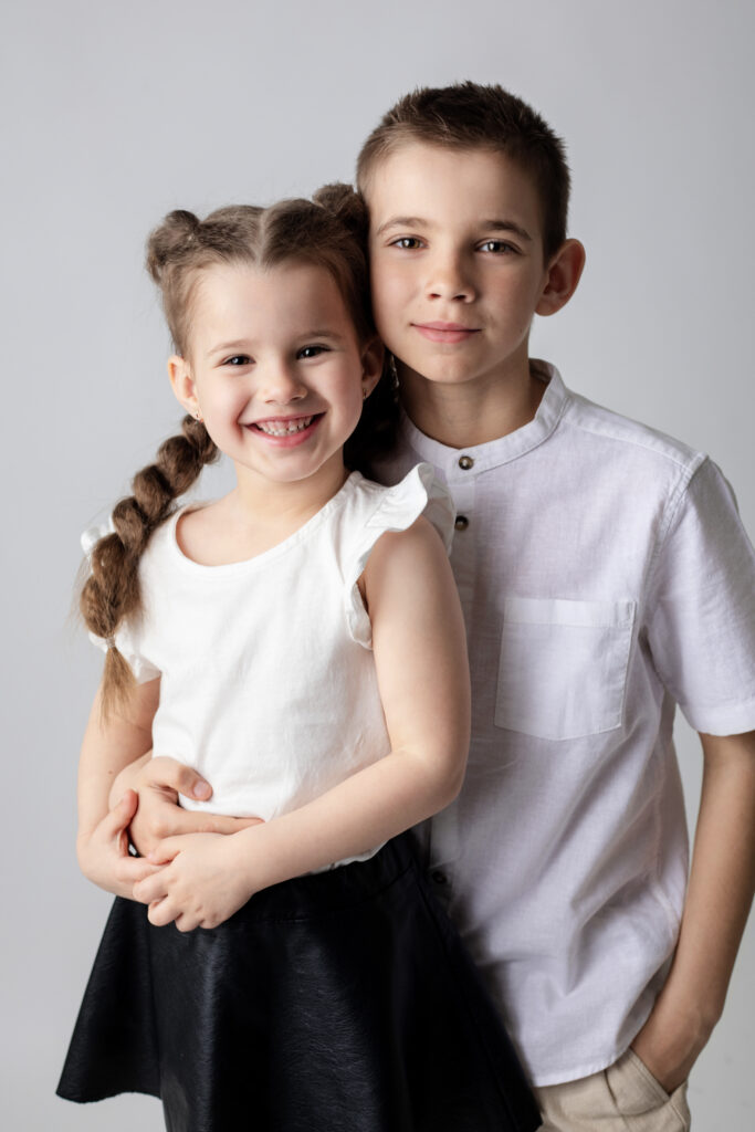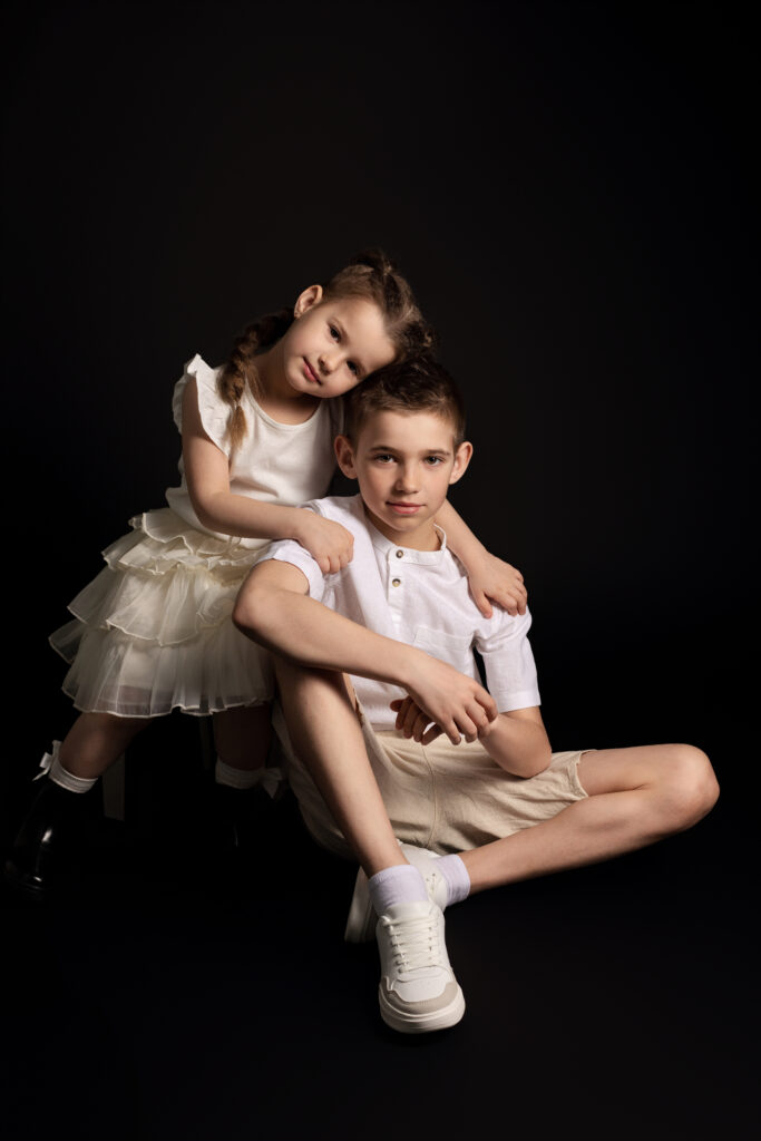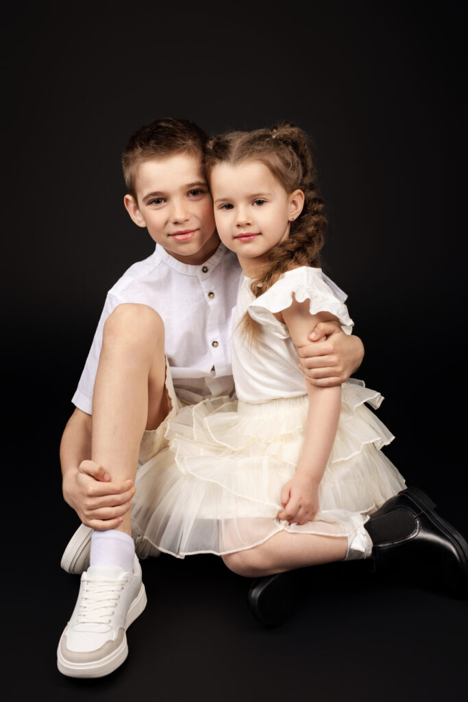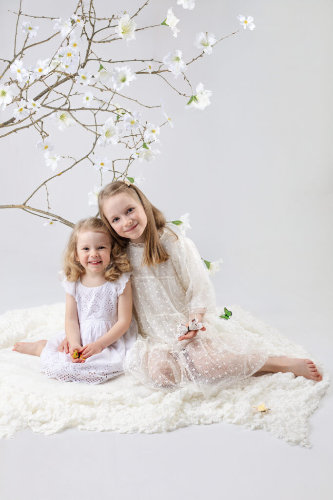 Lämminhenkinen kuvaushetki studioSisarusten välillä on ainutlaatuinen side – katseita, kosketuksia ja yhteistä leikkiä.